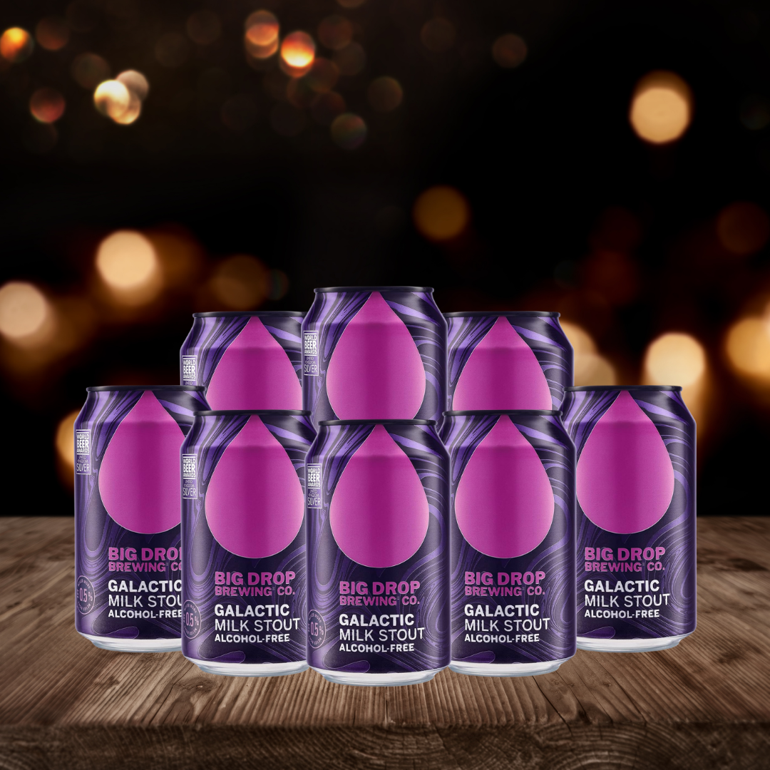 Big Drop Galactic Stout Non-Alcoholic offers a rich and indulgent experience with just 0.5% ABV. This 330ml canned stout delights with flavours reminiscent of honeycomb dipped in chocolate, delivering a smooth and decadent taste without the alcohol. Perfect for those seeking a satisfying, full-bodied beer alternative that doesn’t compromise on flavor. Enjoy a treat that feels both comforting and special, anytime.